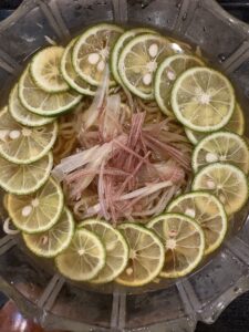 先月、まだ暑い日が続いていた中、すだち蕎麦を食べに行きました!